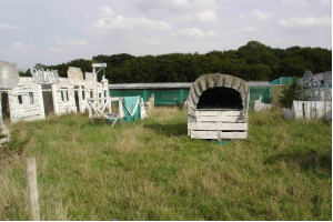 Save the dummy from the hangman’s noose, just like a film set western scene, with shop fronts, chuck wagon, water trough and gallows!